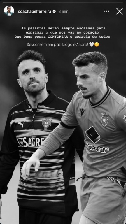 – Não faz sentido. Ainda agora estávamos juntos na Seleção, ainda agora tinhas casado. À tua familia, à tua mulher e aos teus filhos, envio os meus sentimentos e desejo-lhes toda a força do mundo. Sei que estarás sempre com eles. Descansem em Paz, Diogo e André. Vamos todos sentir a vossa falta.