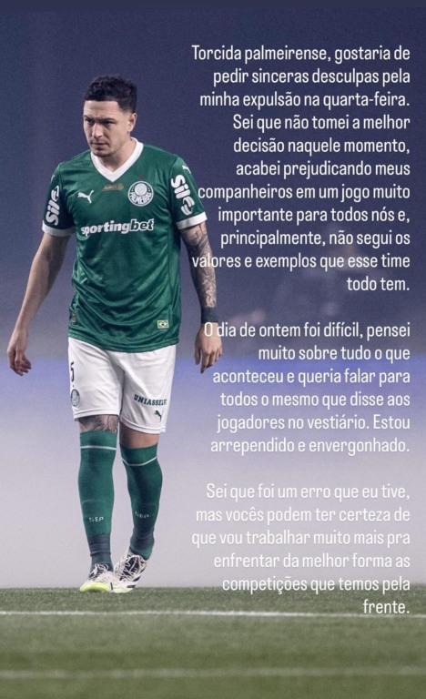 Torcida palmeirense, gostaria de pedir sinceras desculpas pela minha expulsão na quarta-feira.
