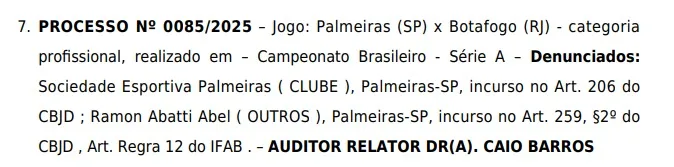 O STJD denunciou, nesta segunda-feira (5), o árbitro Ramon Abatti Abel por não colocar em prática a regra 12 do IFAB. O julgamento acontecerá na quinta-feira, dia 08 de maio, às 10h (de Brasília)