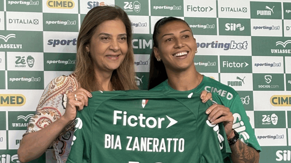 — Quando eu saí daqui, eu falei na minha despedida que eu tinha certeza de que deixei algo da Bia no clube, mas que o Palmeiras também marcou a minha vida. E é uma fala muito verdadeira. Esse carinho que eu sempre tive, esse respeito… eu acho que, vestindo essa camisa, me entregando de corpo e alma, isso marca o torcedor. Às vezes não vai ter gol, mas a vontade que vou deixar dentro de campo vai fazer a diferença. Então acho que esse é o espírito. Talvez eu não tenha dimensão do carinho que conquistei, mas deu para ver um pouco nesse meu retorno como é legal ver o carinho de todo mundo. Não tem feminino e masculino nesse momento: tudo é Palmeiras, tudo é o retorno da Bia — mas acho que é o retorno de uma identidade. Eu agradeço muito, agradeço à Leila pelo esforço, à Sportingbet, nosso patrocinador, e a todas as pessoas: o Alberto, que batalhou muito para isso acontecer. Só posso dizer que vou me entregar ao máximo.