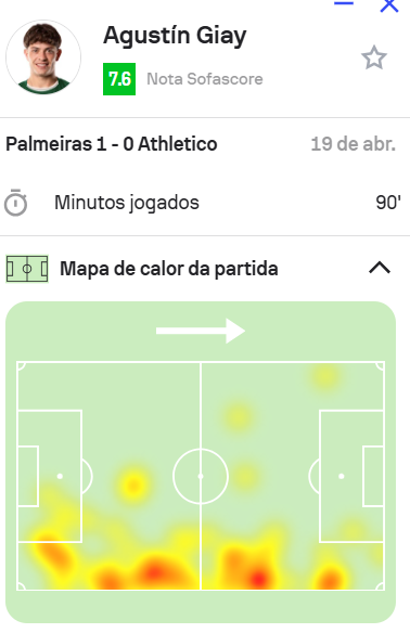 Do outro lado, a condição do jogo no segundo tempo esteve a feição de Giay. A principal característica dele é a marcação e foram cinco duelos vencidos pelo chão em oito embates. O argentino ainda somou dois desarmes certos e outros três cortes. Os dados são do Sofascore.