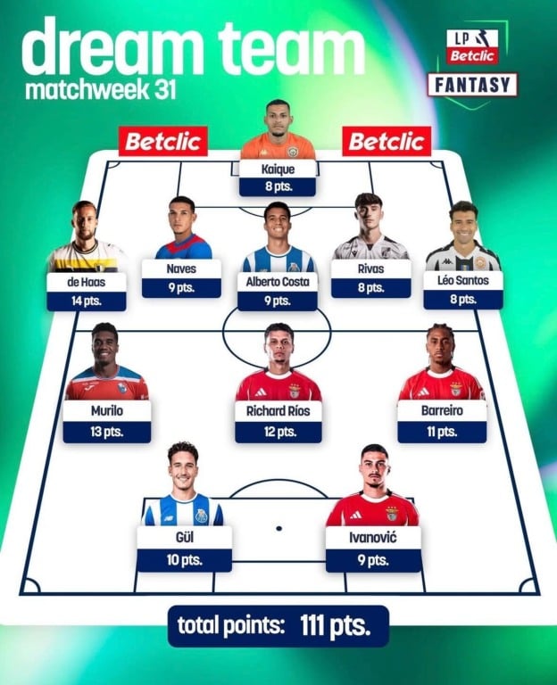 Kaique foi destaquena vitória fora de casa do Nacional sobre o Tondela, por 2 a 0, com cinco defesas, segundo o SofaScore – o time do arqueiro ocupa a 14ª posição. Já Naves fez um dos gols da vitória do Alverca por 2 a 1 sobre o Arouca – o clube do defesnor é o 9º.