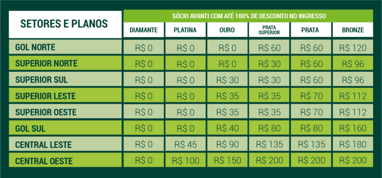 Superior Sul: R$120,00 [inteira] e R$60,00 [meia-entrada]