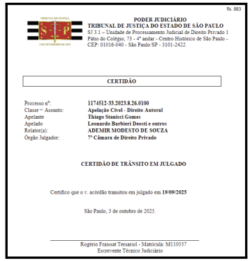 Nesta sexta-feira, foi certificado o trânsito em julgado. Sem novos recursos, ficam pendentes apenas a retirada das matérias do site concorrente e o pagamento das custas processuais, dos honorários periciais e dos honorários de sucumbência fixados.