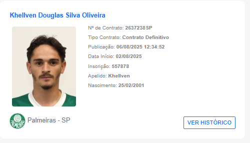 O Palmeiras anunciou na última segunda-feira (4), a contratação do lateral-direito Khellven junto ao CSKA-RUS. O jogador de 24 anos assinou vínculo até julho de 2030 e custará cerca de € 5 milhões (aproximadamente R$ 31,8 milhões, na cotação atual) aos cofres do Verdão.