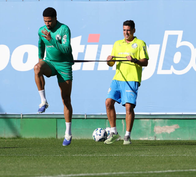 Após ativação, aquecimento e uma movimentação de posse de bola, os jogadores trabalharam construções de jogadas e estratégias de jogo por meio de estacas sob o comando da comissão de Abel Ferreira.