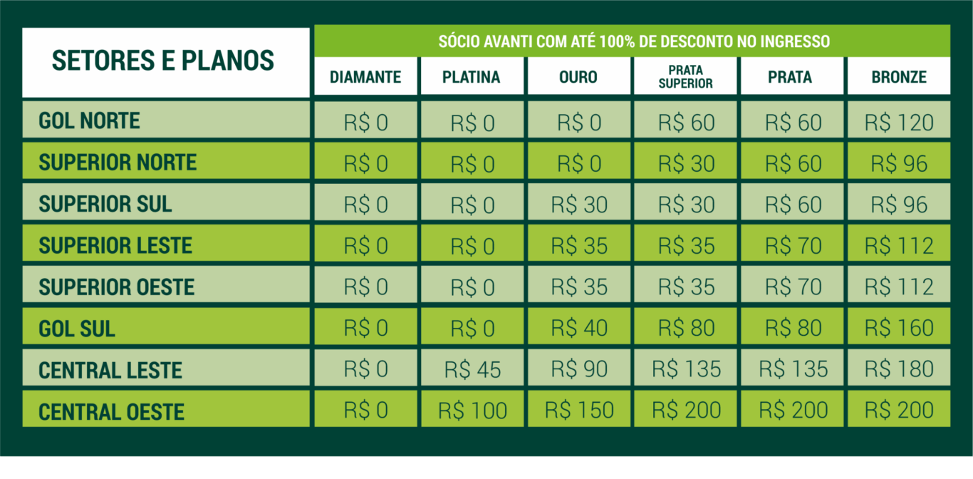 Os sócios-torcedores palmeirenses terão os descontos previstos em cada plano e exclusividade na compra dos ingressos via internet até sábado (09), às 10h, quando começará a comercialização para o público em geral.