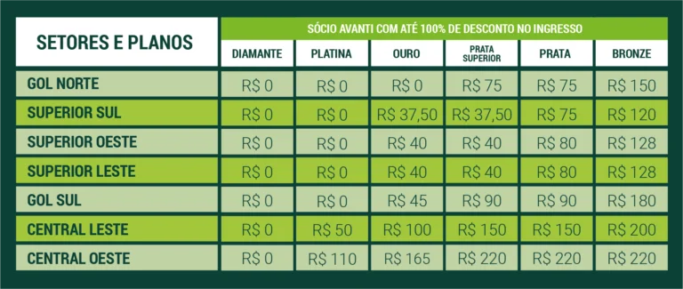 Os sócios-torcedores palmeirenses terão os descontos previstos em cada plano e exclusividade na compra dos ingressos via internet até domingo (19), às 10h, quando começará a comercialização para o público em geral. A venda para os sócios Avanti será dividida de acordo com a pontuação do rating de cada associado, classificados de zero a cinco estrelas.